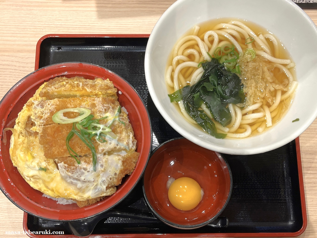 現在はちょっと超えて1,010円(税込)となっていながらも、ダブルのカツにご飯も大盛無料、そしてうどんも付いているので、なかなか満足感も高いボリュームランチメニューかと。