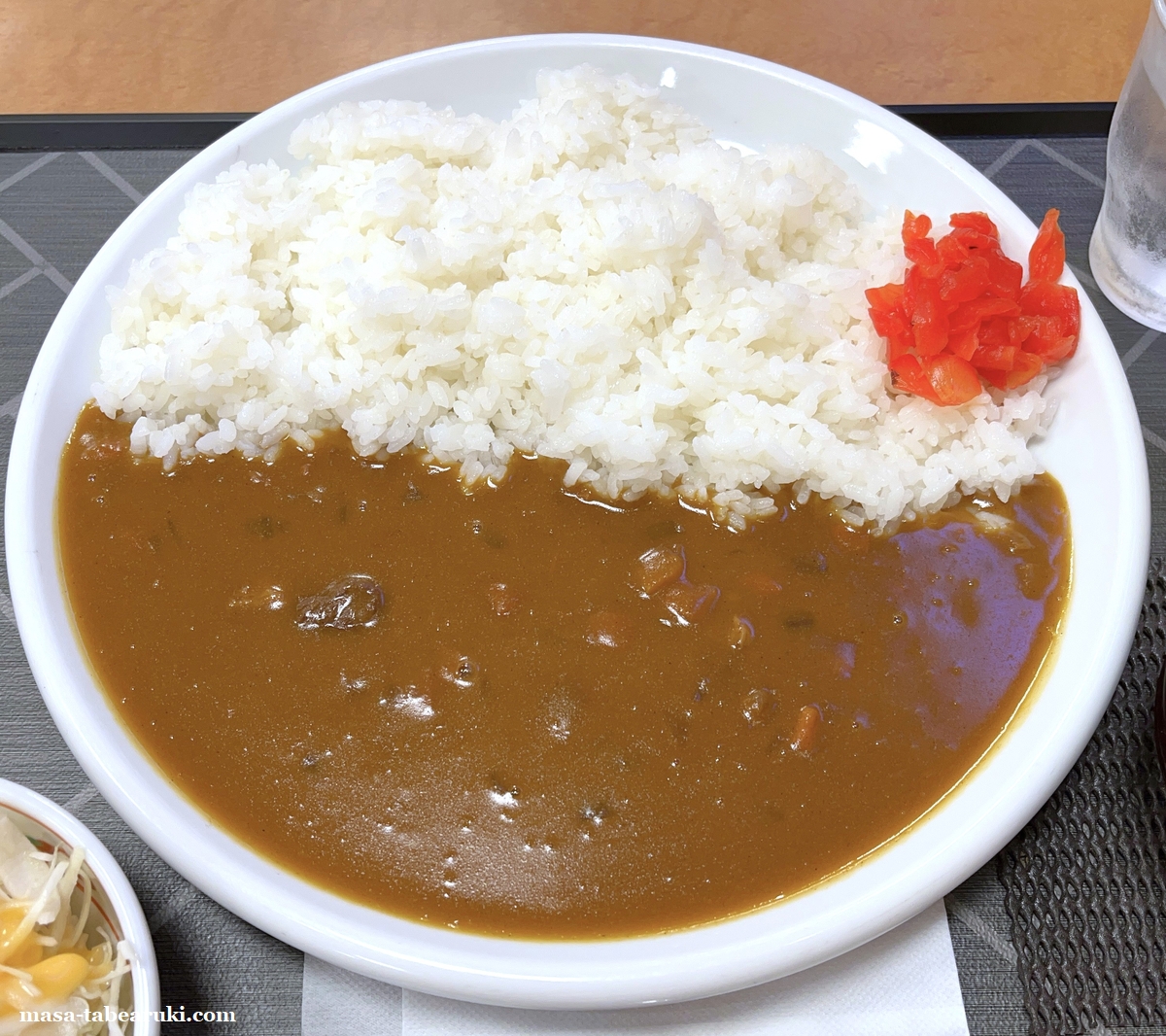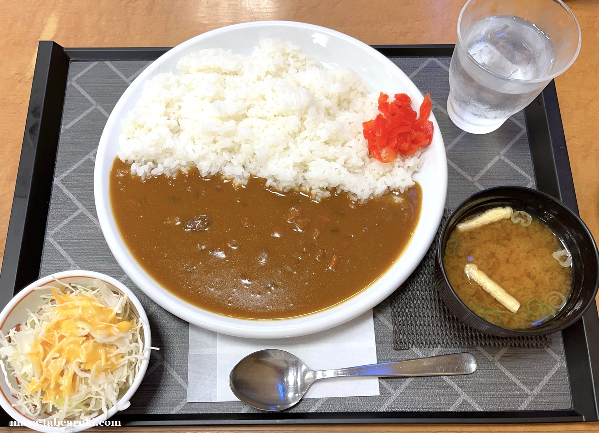 一番シンプルなビーフカレーですが、これ以外にカレーはカツカレーがあるのみ。またカレーには味噌汁と野菜、お冷がセットになっていました。