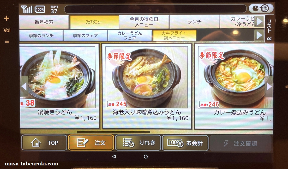現在、熱々メニューとして販売されているのは3種類。「鍋焼きうどん」はいつも販売されているレギュラーメニューですが、それ以外に季節限定として「海老入り味噌煮込みうどん」、「カレー煮込みうどん」が販売されています。