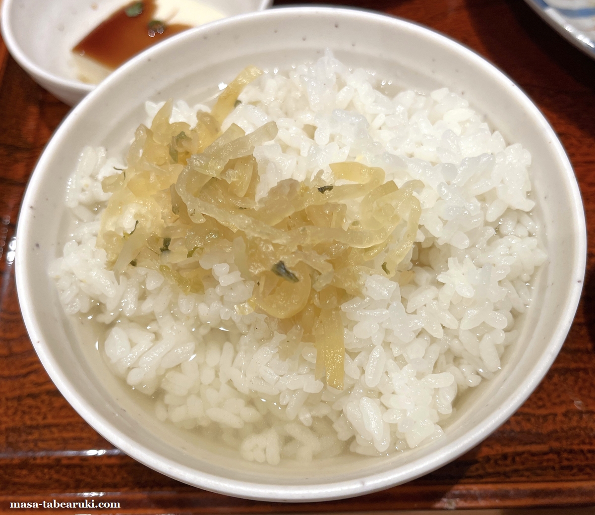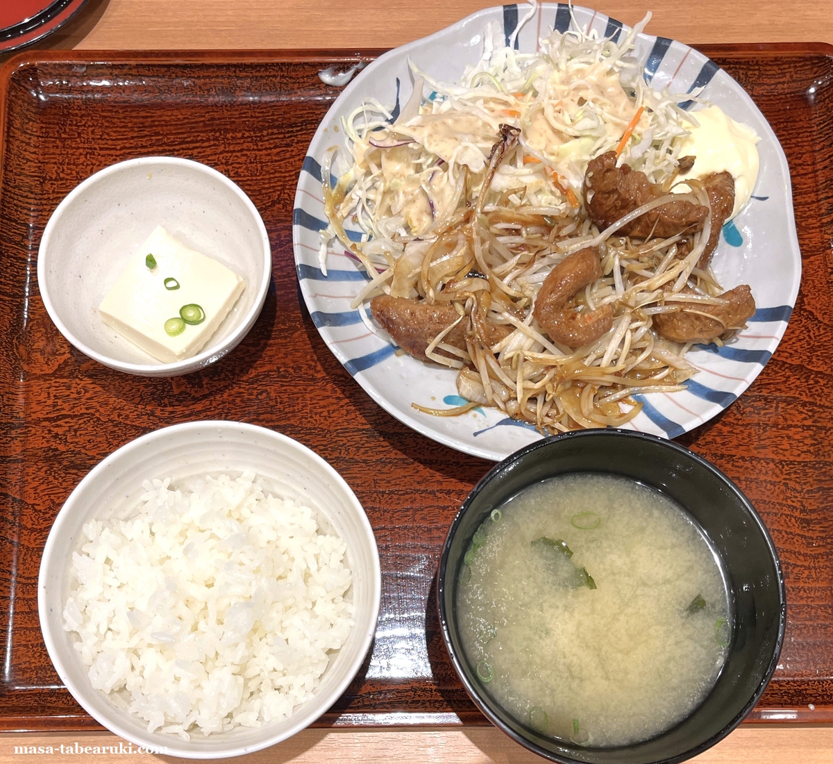 その大豆ミートを使用してしょうが焼の味付けで食べられる形となっており、メインの他にご飯、みそ汁、冷奴がセットとなっています。もちろん定食なのでご飯のおかわりは自由です。