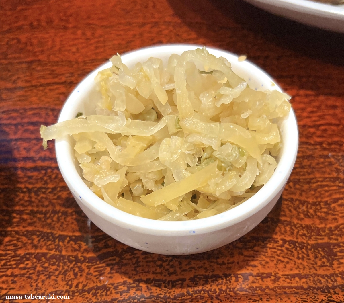 モヤシや野菜はあるものの、何か物足りなさがあったためかおかわりを2回してしまいました。。(すべて中盛で)最後は無料の漬物と出汁で〆にしましたが、漬物は各テーブルにはなく、出汁が置かれている場所にあるので自分で好きな量を取る形となっていました。