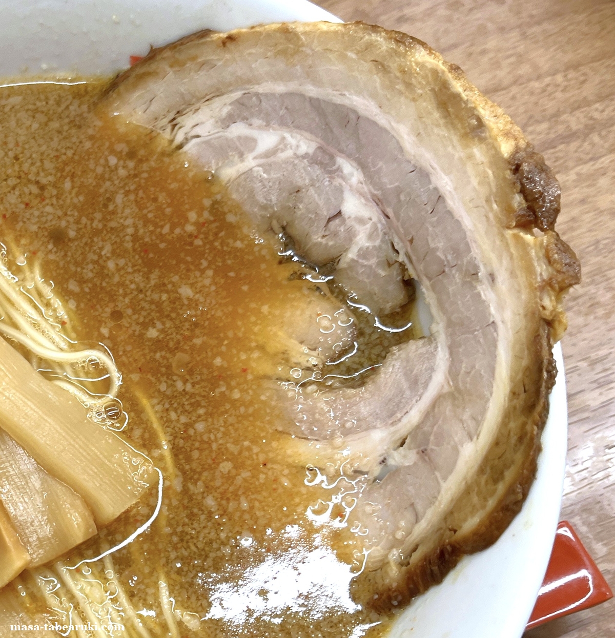 | 特長2 | チャーシューは厚めで、持ち上げると崩れるくらいのホロホロ食感 |