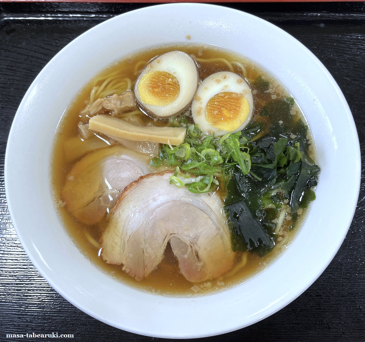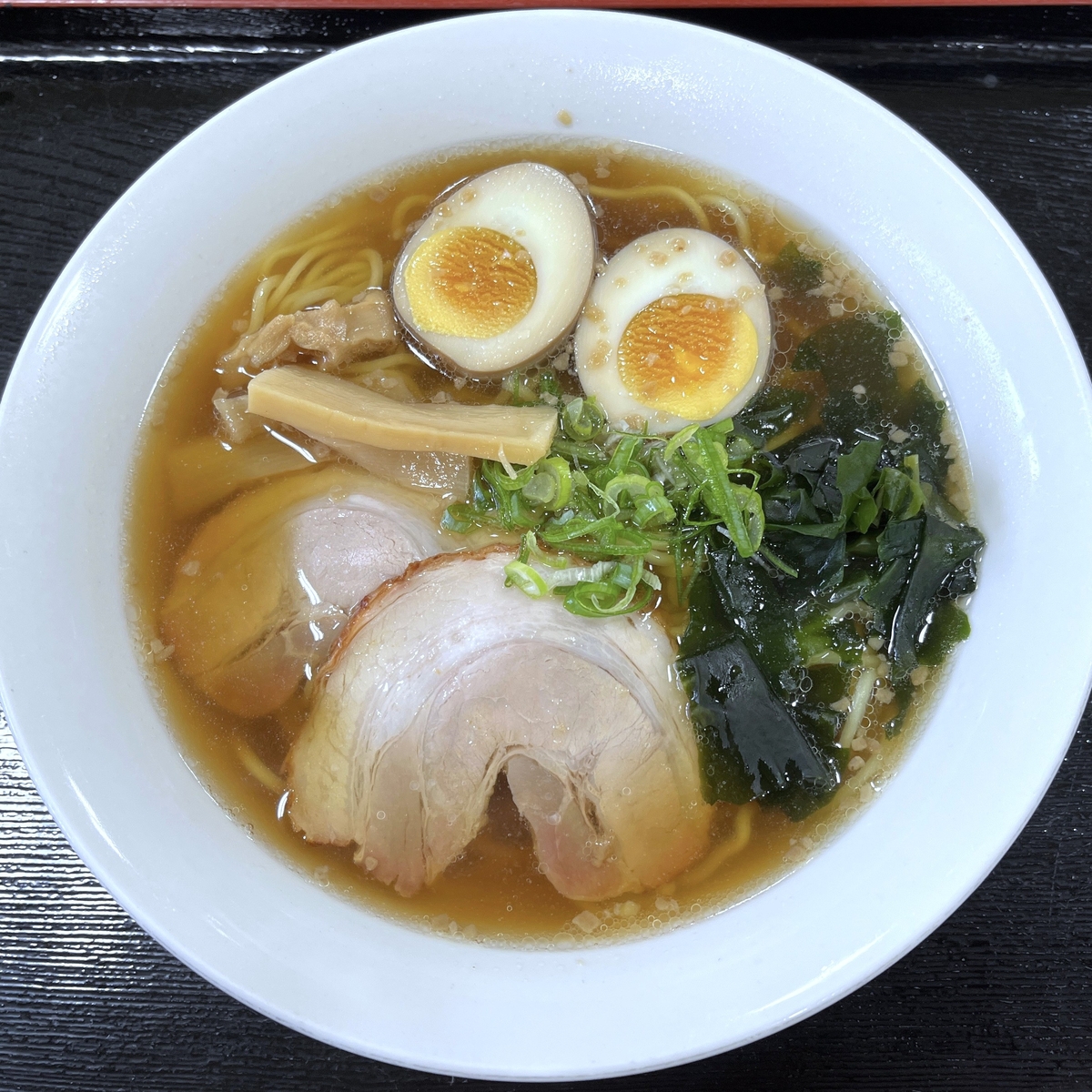 ちょっと別の話になってしまいましたが、今回のラーメンは”薬草煮卵”が単品でも販売されているので、ラーメンのスープに薬草を使用されているのではなく、煮卵に使用されているのかと思われます。具材はチャーシュー、ネギ、わかめ、メンマそして主役となる薬草煮卵。