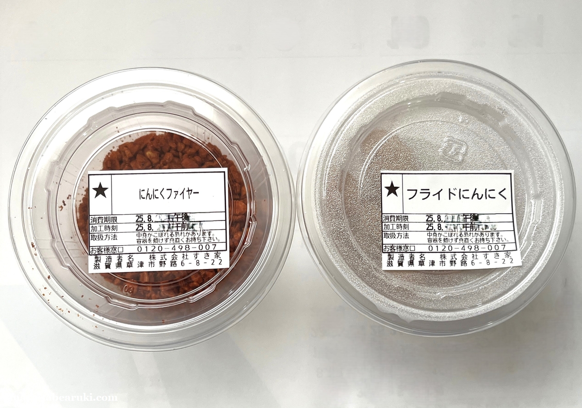 用意したトッピングは二つで「フライドにんにく」と「にんにくファイヤー」。