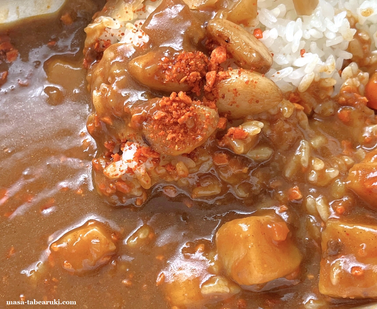 辛味はもちろん追加されるうえににんにくチップのカリッとした食感もプラスされてなかなかの好印象でした。ただこのトッピングはいつもあるわけでは無く期間限定となるため、勝手に名付けた「フライドにんにくファイヤーカレー」を楽しめるのは、この期間中だけになるのが惜しいところです。