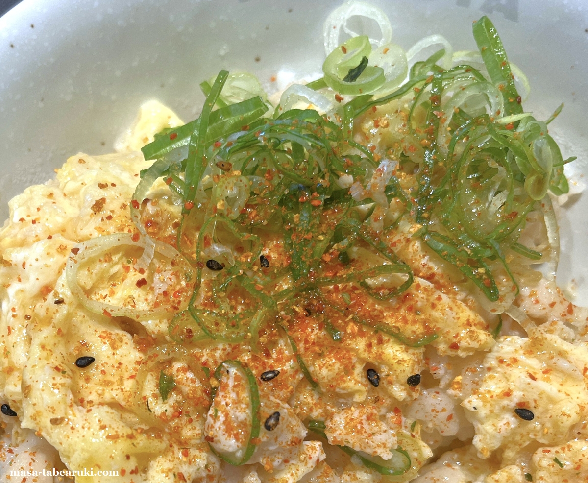 七味に関しては個人的には好印象。玉子や鶏そぼろに大きな影響を与えることなく、軽い辛みと風味が付加されるところが良いかと。