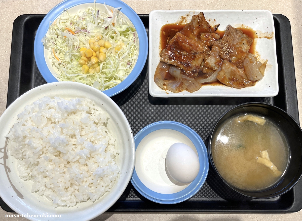 お目当てのメニューとは「スタミナ厚切り豚カルビ定食」。今年1月に発売されてからかなりハマっており、定食、丼(特に丼)共になかなかの回数をリピートしているメニューです。