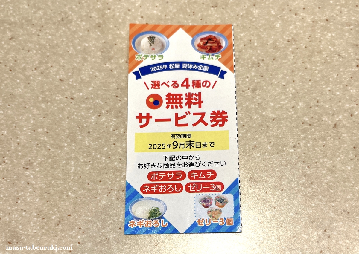 連続して松屋に訪問したため、クーポンが貯まって来たので使用。ポテサラにしましたが毎回コレにしている気がする。。でもこれで一品増やせるのはありがたいですね。