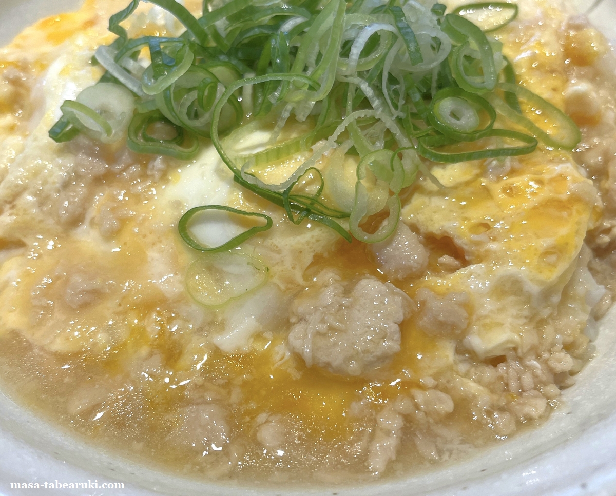 最近、松屋の朝食メニューには「鶏そぼろたまご丼」が追加された後に前述の「旨辛玉子ソーセージ丼」も登場。そしてさらに鶏そぼろたまご丼が変化して「得朝鶏そぼろたまご丼」が追加されていました。では早速並盛で注文して実食です。