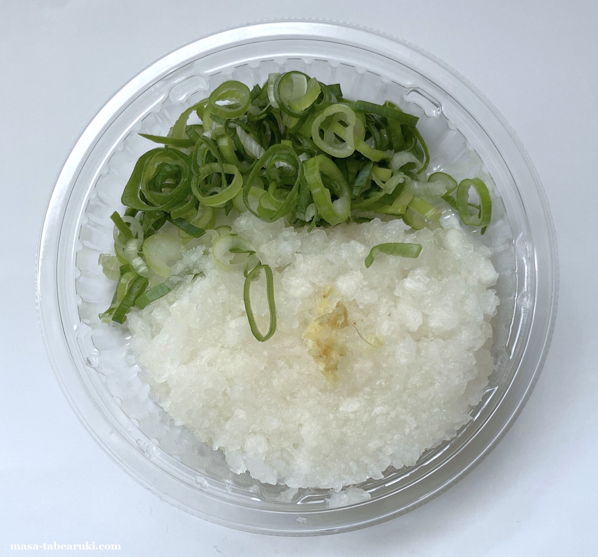 容器は基本的に2層構造となっていますが、大根おろしとネギはさらに小さいトレーに載って分けられています。美味しく食べるための配慮なんでしょうけどコストもかかるんやろな。。