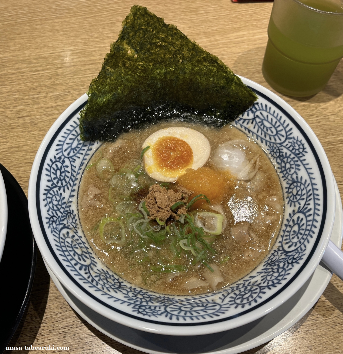 この日の昼飯は久しぶりに丸源へ。というのもアプリのスタンプが10個貯まり500円引きのクーポンを貰っていたので、これを使ってしまうために来てみました。時刻は14時過ぎながら平日でもそこそこ混んでいますね。ではカウンター席に着いてタブレットでメニューを確認します。