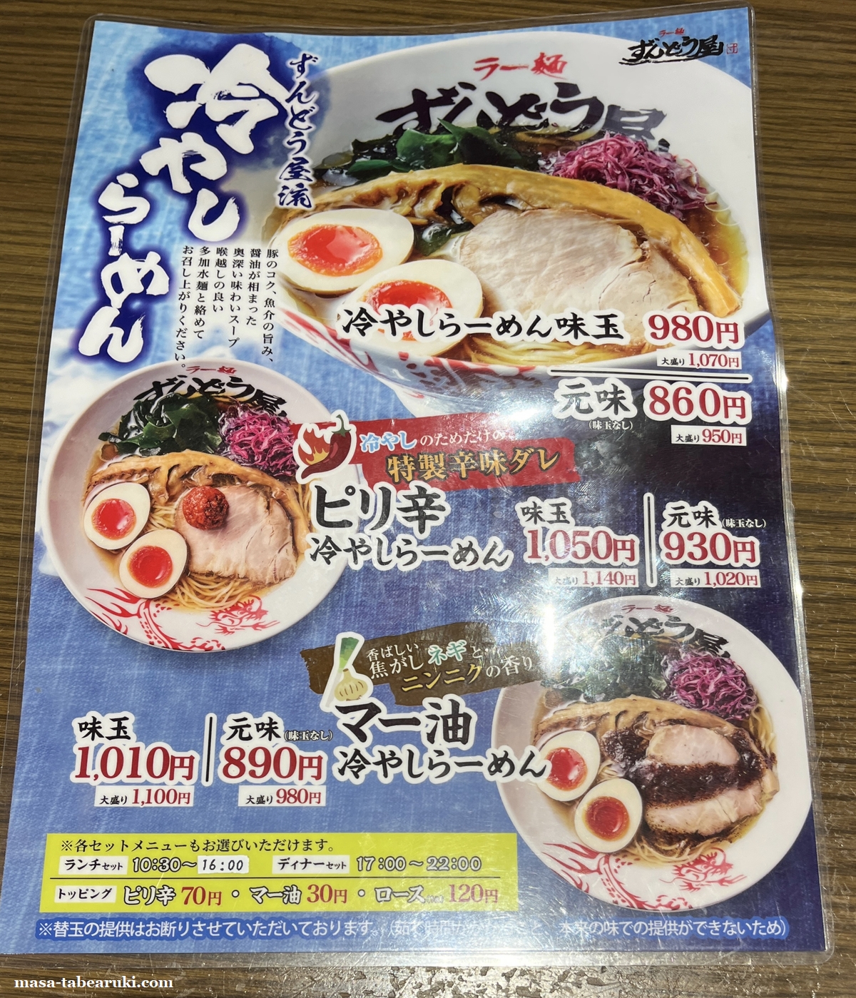 | ずんどう屋流冷やしらーめん 味玉 | 980円 |
