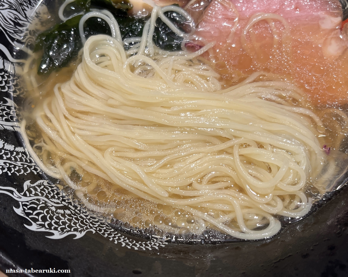 スープは豚清湯で通常のラーメンとは対照的なタイプ。旨味もかなり複雑に感じますが、先のプレスリリースによると豚清湯(昆布・玉ねぎ・干し椎茸もプラス)に5種類の魚(鰯・鯖・宗田鰹・鰹・焼きあご)のダブルスープになっているとのこと。