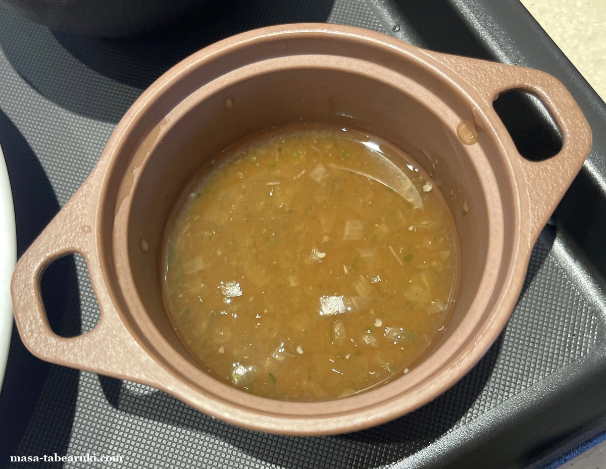 すべての具材とご飯がまとめて皿にのっているプレート形式での提供となっており、付属しているのはいつものみそ汁と別容器に入った何かのソース。