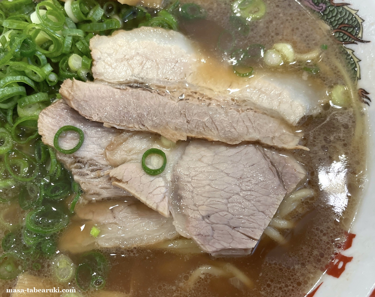 チャーシューは赤身部分が中心で量的にもそこそこあります。麺はモチっとした弾力を感じたいため、最近はやわらかめで注文することが多いかな。スープはほんの少し獣臭がしていますが食べ進むとほとんど分からなくなります。ただ、今回はちょっと塩気がやや強めに感じたのは体調のせい?