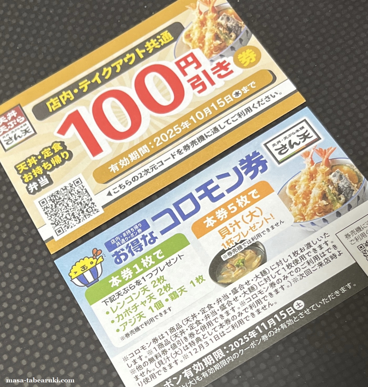 クーポンも貰いましたが、コロモン券は以前から見かけるものながら、100円引き券はあまり記憶にありません。チェーン店でもこういったクーポンを配布しているところも多いですが、やはり期限内にリピートしてくれる客を掴むのにしのぎを削っているようにも思えますね。