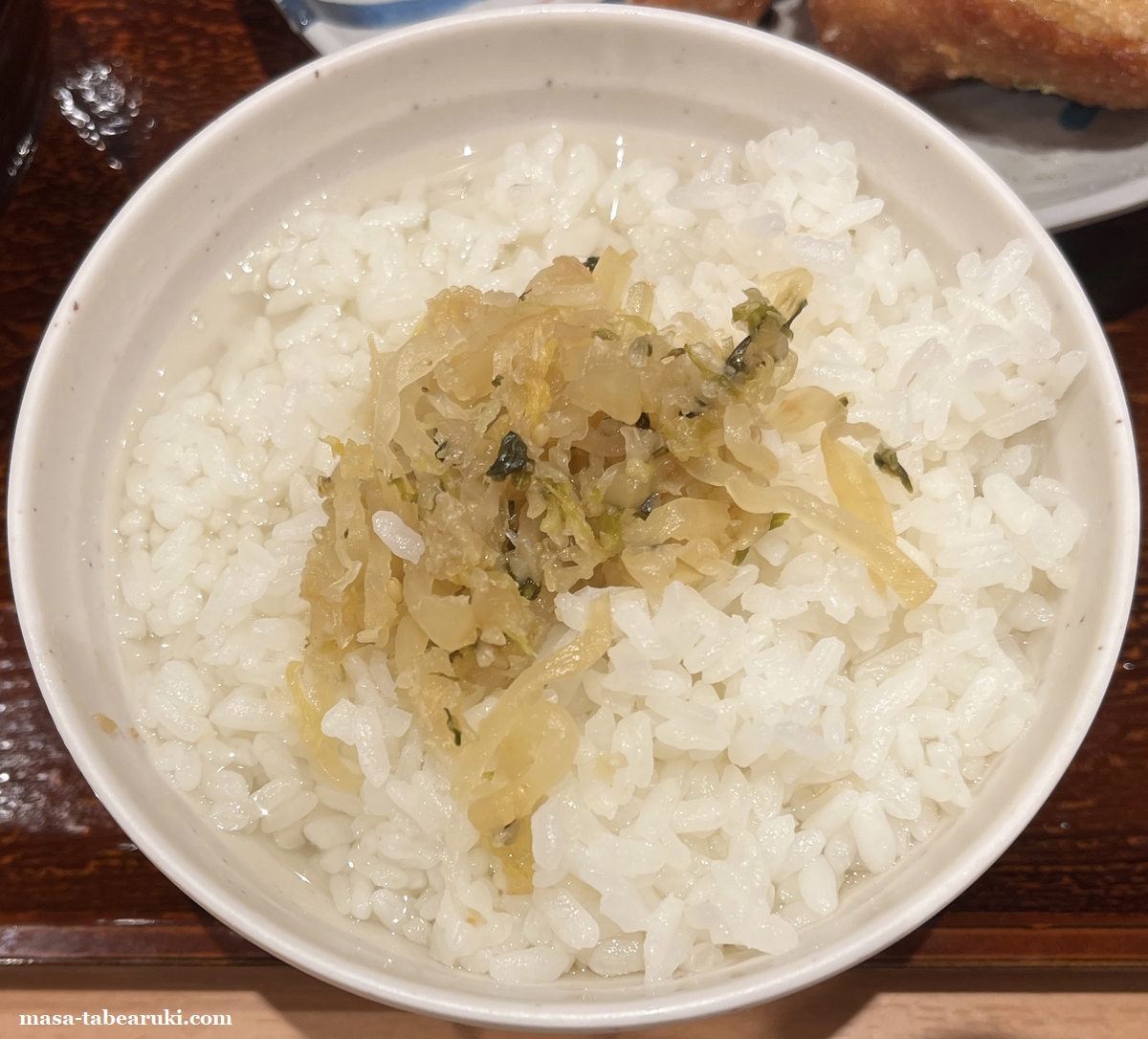 いつも通りにご飯のおかわりは1回までと個人的に決めているので、2杯目はセルフコーナーにある出汁と漬物で完食。