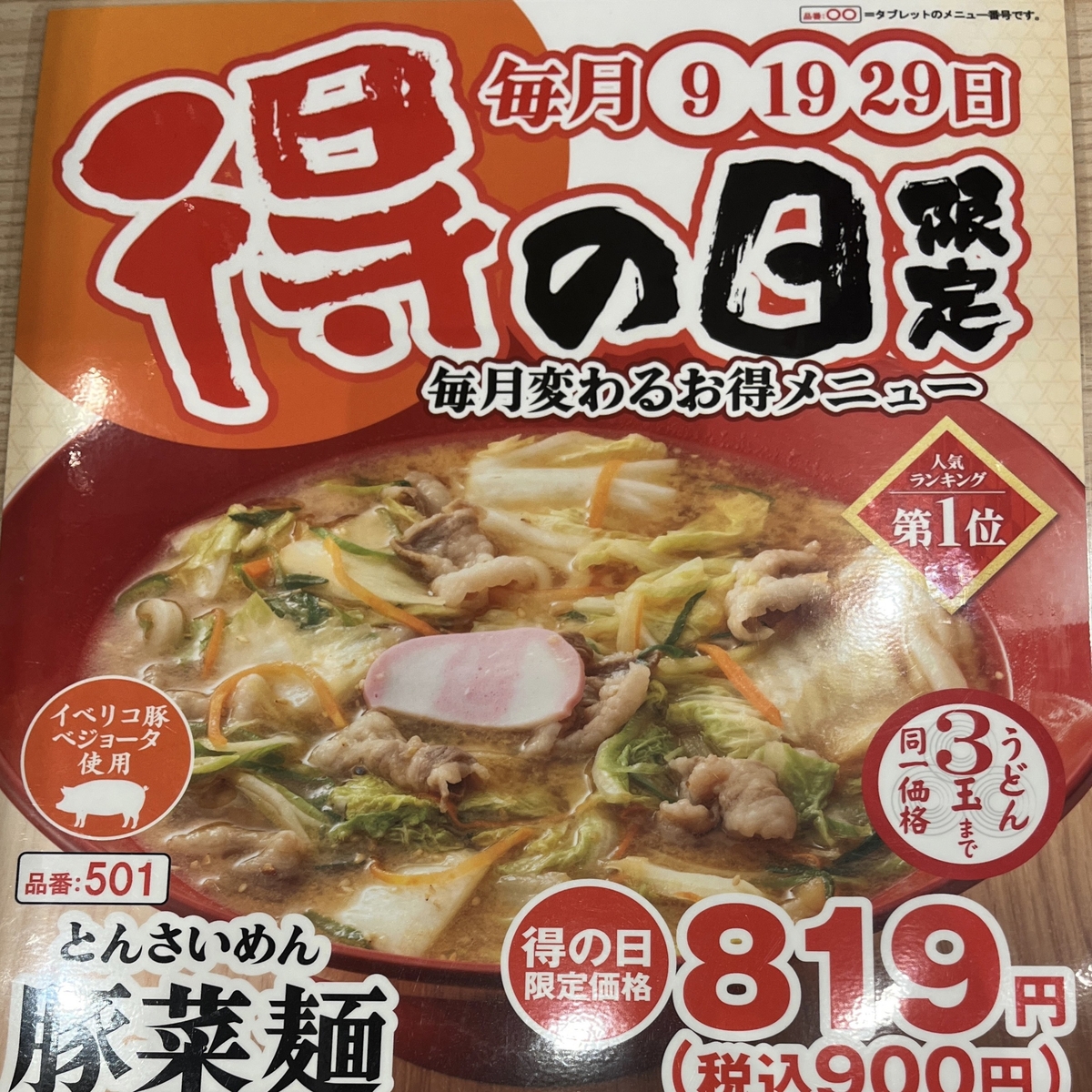 正直なところはLINEのショップカードポイント目当て(笑)得得の2025年9月の得の日は『豚菜麺』