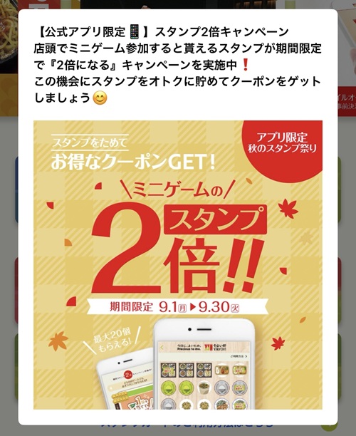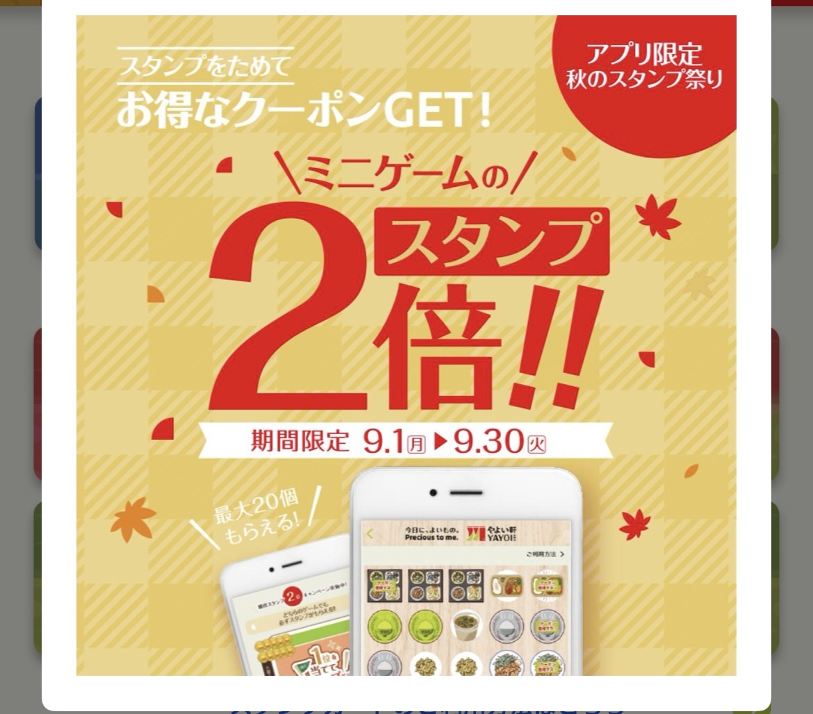今年はそこそこやよい軒に訪問する機会が多いので、ぜひこれらの特典は受けてみたいなと思います。それから今回のようなスタンプ2倍のサービスを来年3月までにまた行って欲しいですね。
