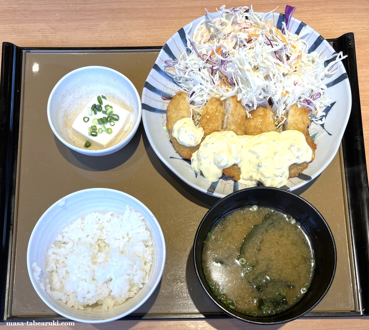 定食にはメインのチキン南蛮とご飯、みそ汁、そして冷奴が付属。もちろんご飯はおかわり自由となっており、通常990円(税込)が890円となりました。