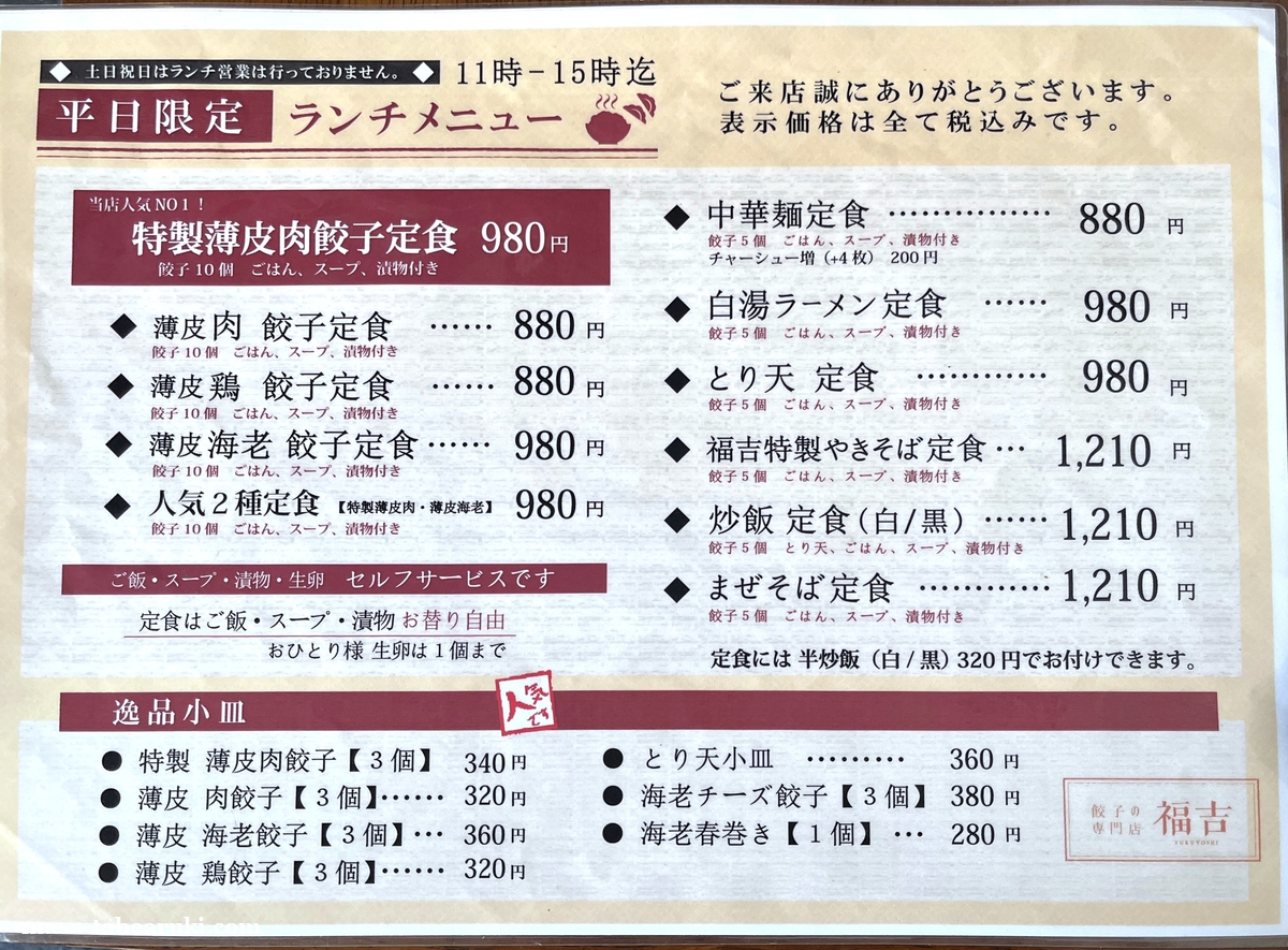 ランチメニューの魅力にはなかなか勝てないが次こそは(笑)『餃子専門店 福吉』