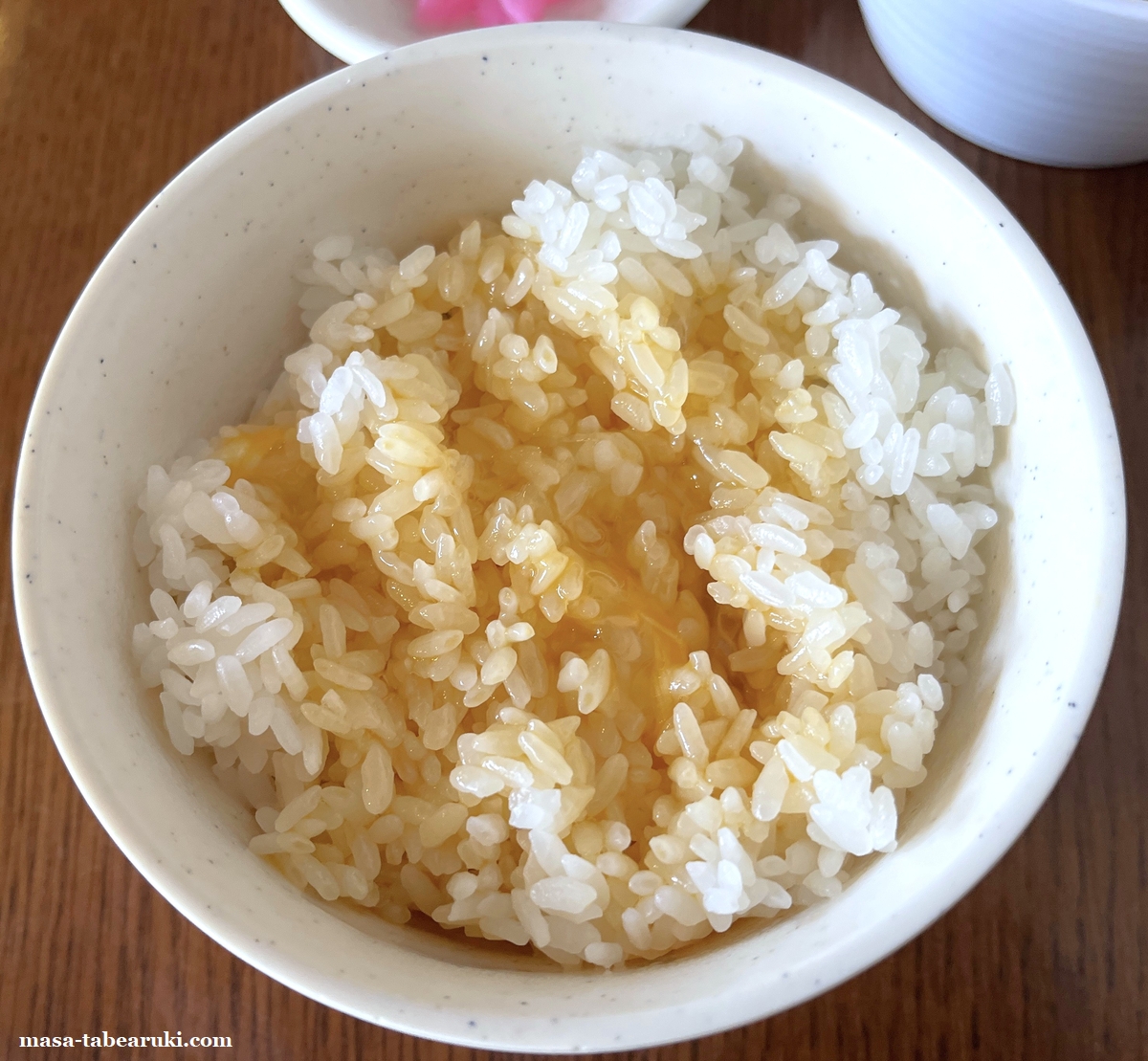 コロナ渦では一時期中止になったことはあったものの、ランチで昔から続けられているサービスで、ご飯だけではなくスープや漬物までお替り自由なのがありがたい。しかもひとり1個の生たまごまでサービスなのでどうしてもランチで注文してしまいますね。ただランチメニューは平日限定で15時までなのでご注意下さい。