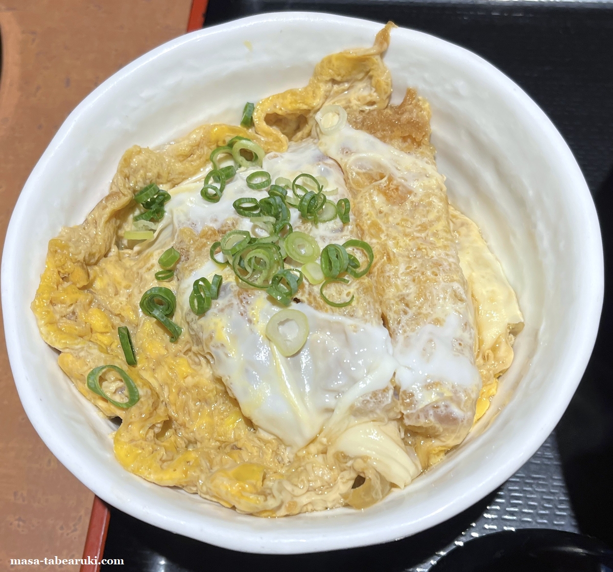 今回は選べるミニ丼をミニカツ丼にしてみました。ミニなので茶碗くらいのサイズになりますが、3玉のうどんと一緒に食べるには十分(私には)。やや濃いめの出汁で玉子の状態はもうちょい半熟でも良いかな。カツは1枚では無く半分くらいの量となっています。