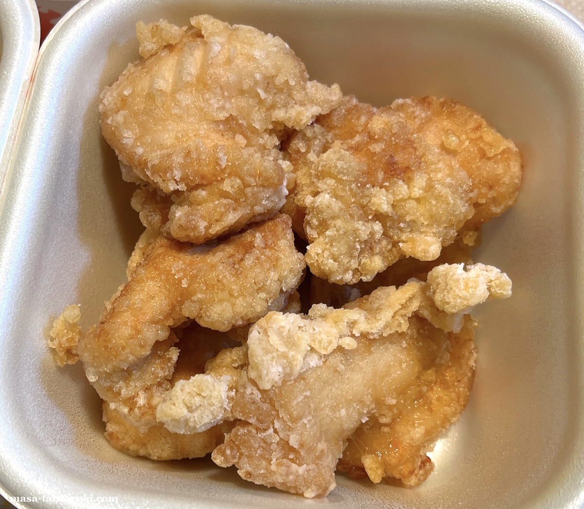 鶏の唐揚げは皮の部分等は無くささみ肉を使用されている感じで、パサパサで好みでないといった人も近くにいます。しかし私はこのパサついた感じが好きでマジックパウダーで食べるのも好み。