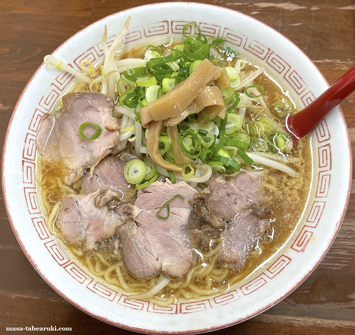 価格は最初に訪問した10年前と比べると70円ほどアップしてはいるものの、750円という価格は今のご時世では安いほうかと。具材はチャーシュー、ネギ、モヤシ、メンマとなっており、これも以前と変わっていない印象です。
