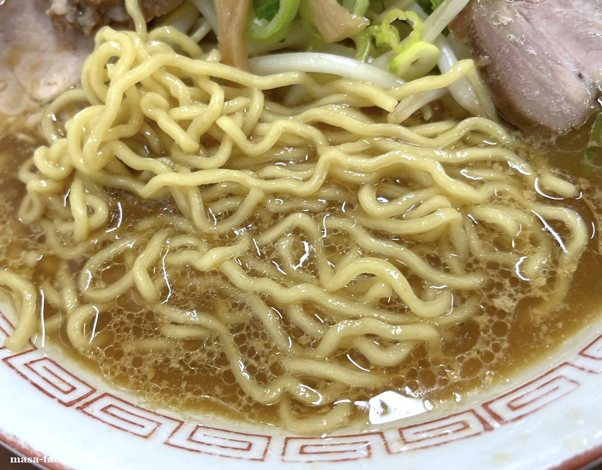 麺は以前から変わらず、やや太めで強めの縮れが入っているのでスープも良く絡む。スープの表面には多めの油が浮いているためテカってます。あっさりめの味わいは変わらないのですが、以前よりも旨く感じたのは何か変更されたのかそれとも自分が変わったのか?
