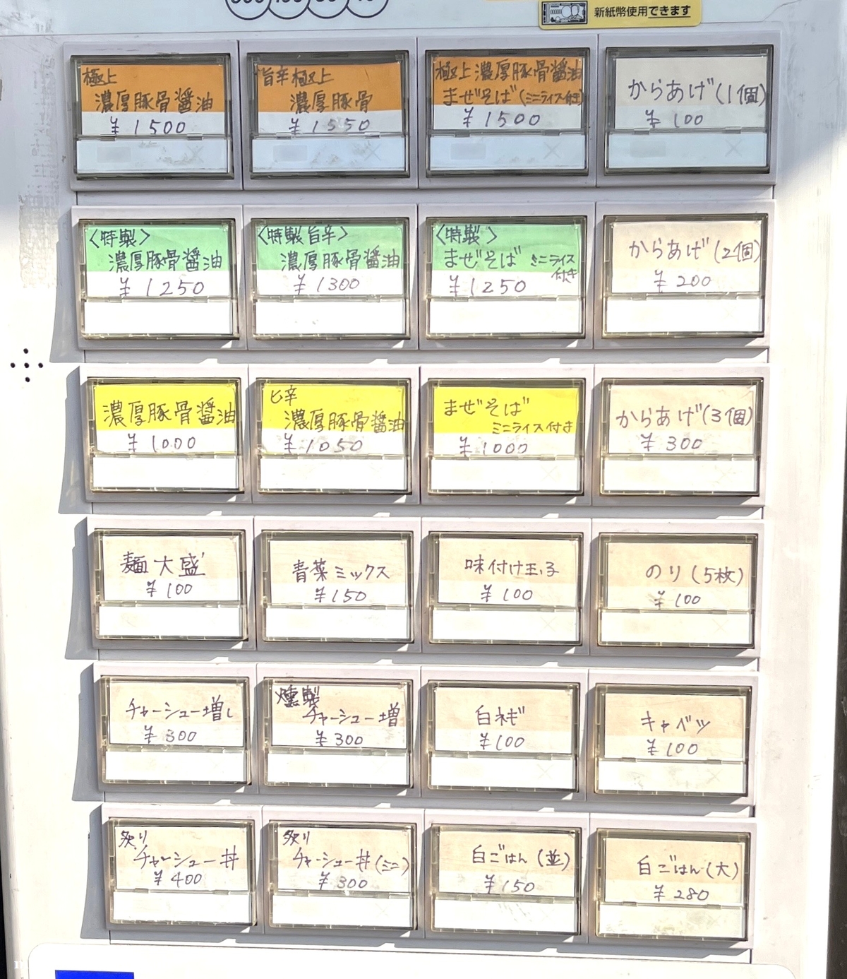 では券売機でメニューを確認します。