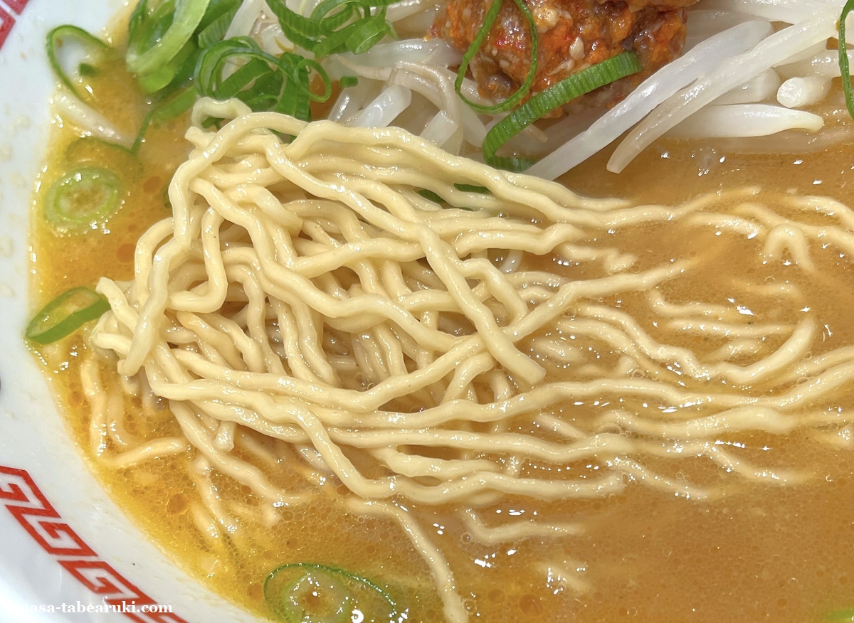 スープは少し甘味?のようなものも感じる味噌で風味もしっかりとありますがどこかで食べたような記憶も。途中で台湾ミンチを溶かすと辛味と風味がプラスされ良い味変の役割を果たしているように思えます。