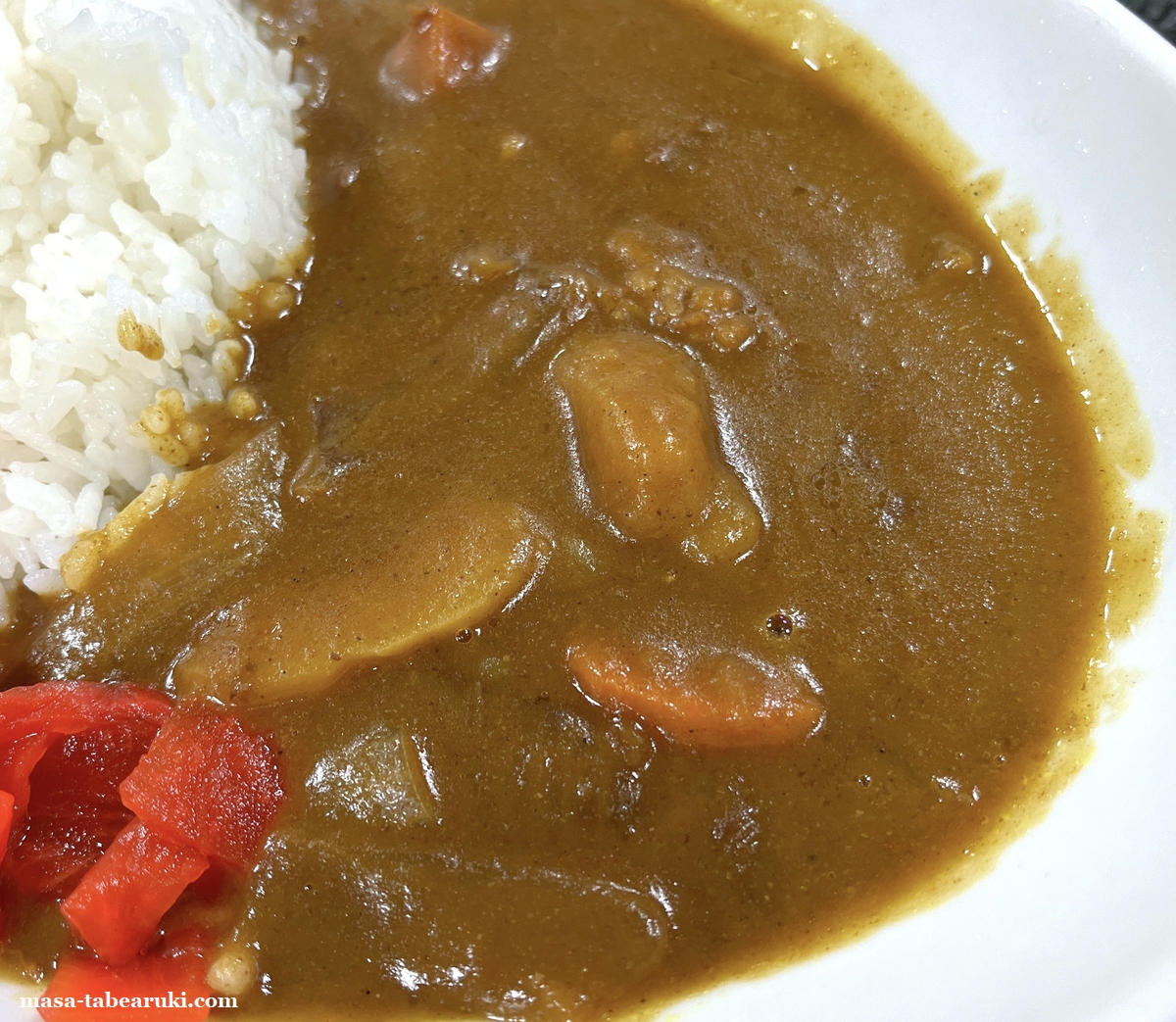 野菜は大きめにカットされ良く煮込まれているので柔らかく、カレーのスパイスもしっかりと効いています。ただ辛味はそれほど強いものではないのは万人向けに調整されているのかもしれません。