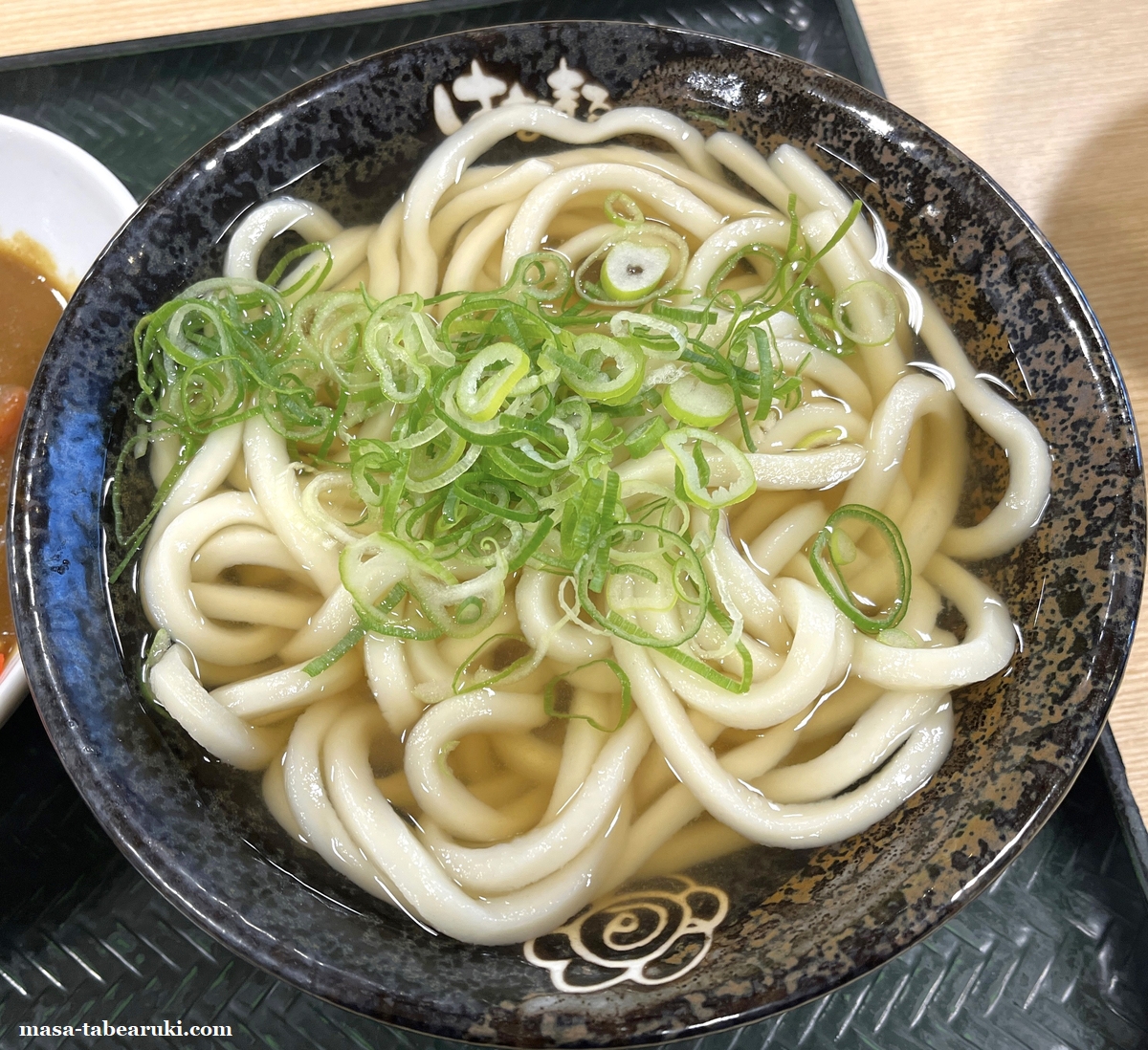 カレーセットは好きなうどんに+400円でセットにすることが可能で、相棒のうどんは何にしようか検討した結果、「かけうどん(中)」でお願いしました。