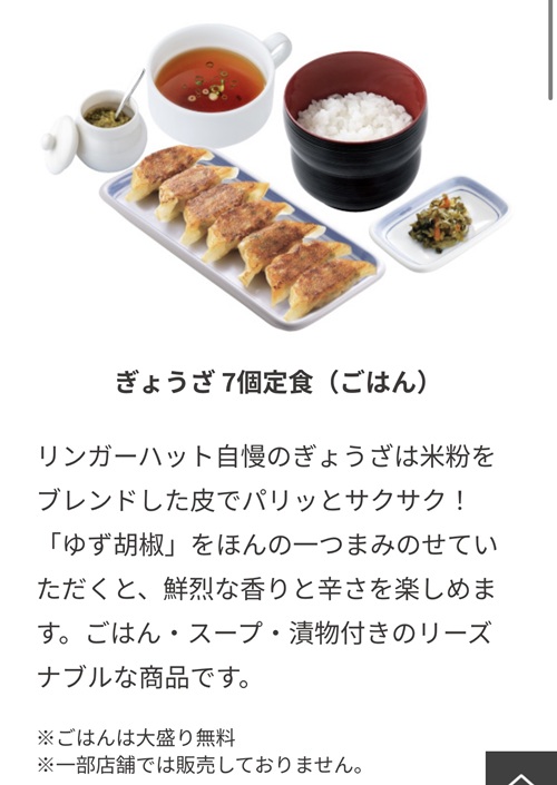 ちゃんぽん食べずに餃子(笑)リンガーハットの『ぎょうざ7個定食(ごはん)』