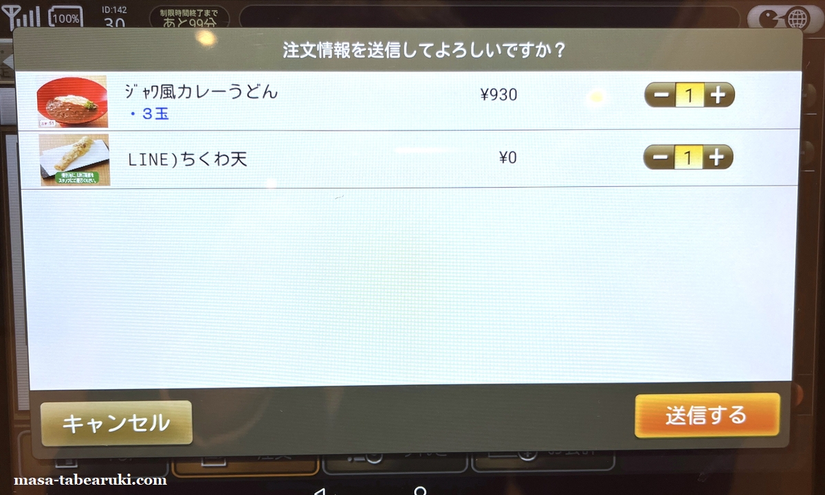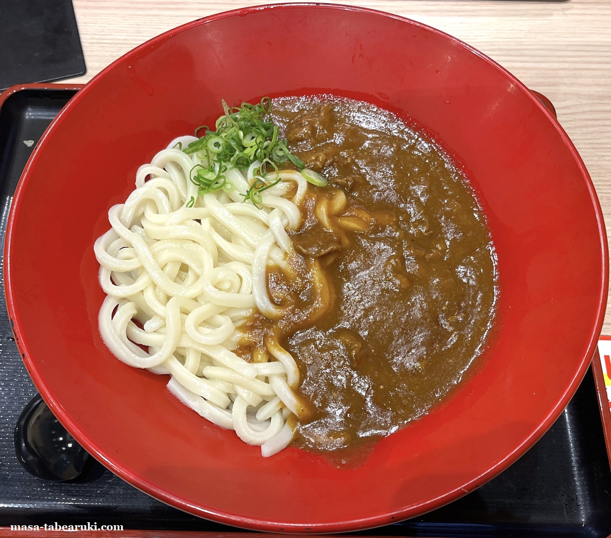 最近はこちらのお店でカレーうどんにハマりつつ?あるので、3年半くらい前に食べた「ジャワ風カレーうどん」を3玉で注文。12月に入ってちくわ天のLINEクーポンも届いていたのでこれも使用することにしました。待つこと数分で到着です。