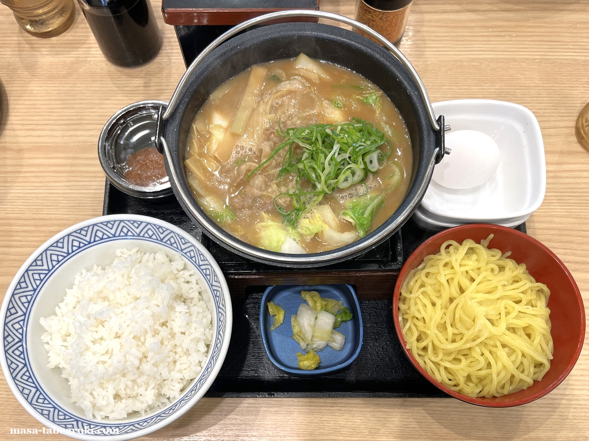 食べ方が色々あって迷うが満足感が高い。吉野家の『牛肉玉ラーメン鍋膳(とんこつ)』