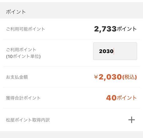 では半年前にほとんどの松屋ポイントを使用してしまいましたが、現在はどのくらいあるのかというと「2,733ポイント」。2,500円くらいまでのものなら食べられるなということで現在販売されているメニューから選ぶことにしました。