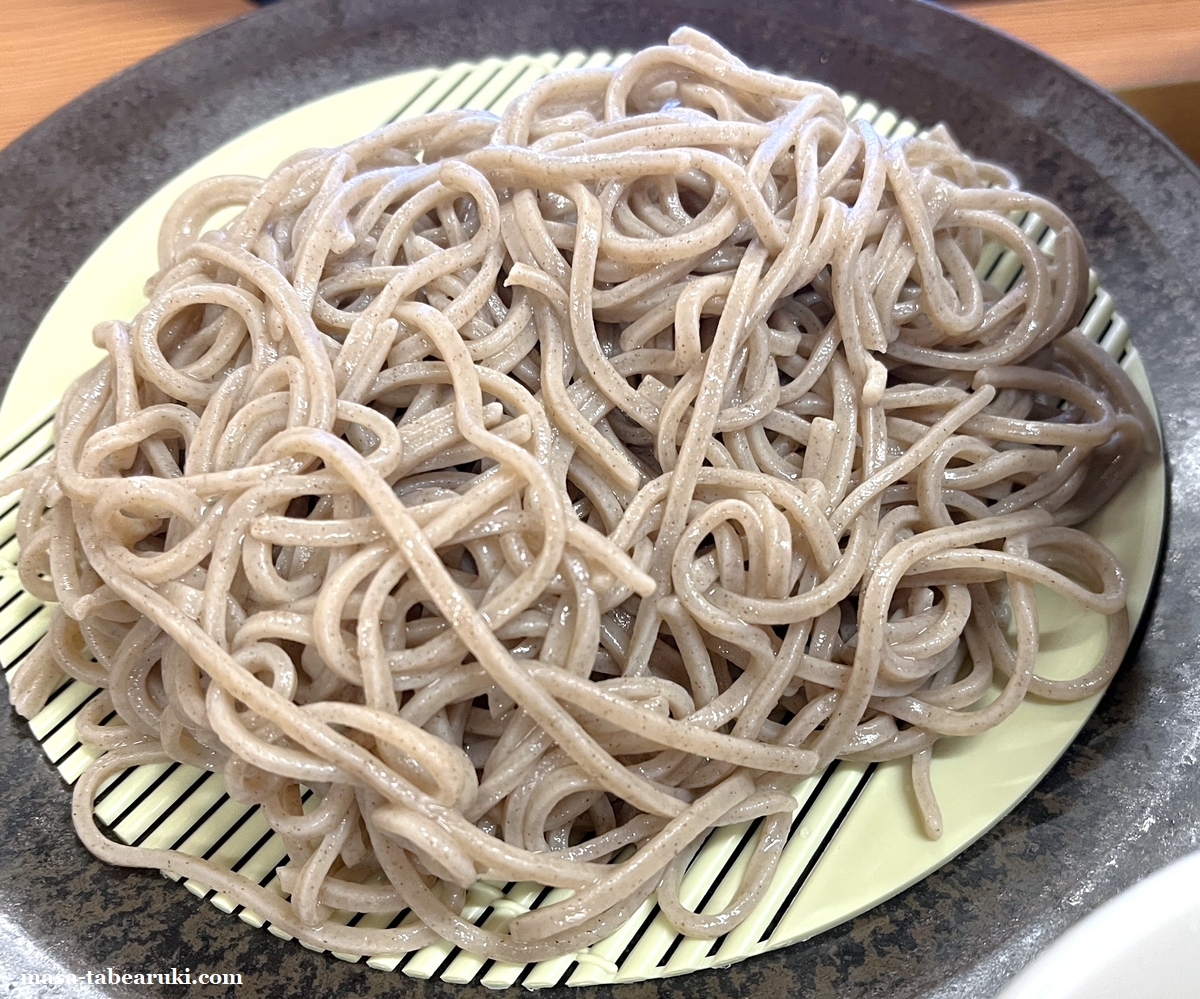 蕎麦は今回普通盛にしましたが+100円(税込)で2倍盛にすることも可能。実際に豚汁に蕎麦を浸けて食べてみると悪くない。いやどちらかと言うと旨い。個人的にはラーメンの麺で食べる豚汁ラーメンよりも良いかもしれないと思ってしまうほどでした。ただ弱点としてはつけ蕎麦なので蕎麦が冷たいため、豚汁の温度が浸けるたびに急激に下がることかな。これはつけ麺でも同じなので仕方が無い。