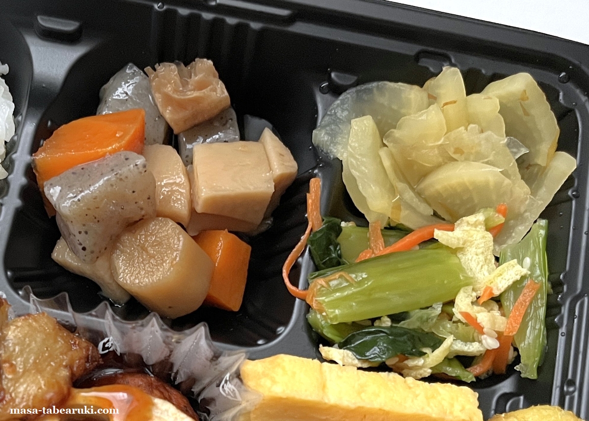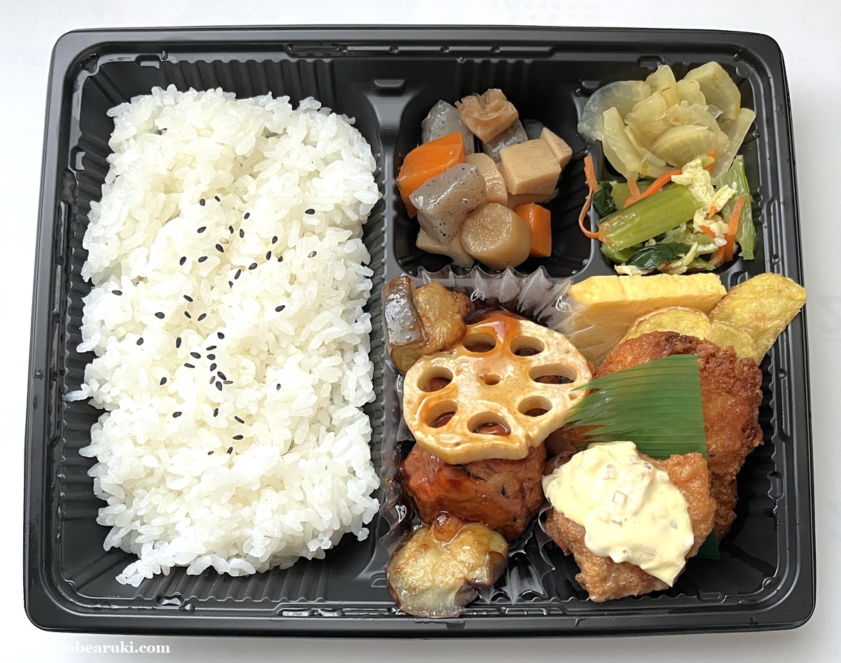 お店でも確認できましたが、自分が食べたいと思っていた「豆腐ハンバーグ&野菜の照りだれ」でした(笑)幕の内だけあり、色々入ってなかなか楽しめそうな弁当かと。