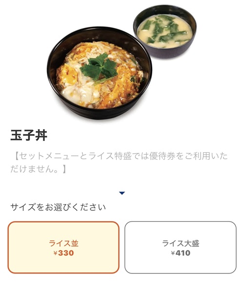 量的にはライス並なんでそれほど多くは無いケド、朝に軽く食べるだけなら十分。玉子はやや固まった状態で中にはタマネギが入っており、てっぺんには三つ葉が載せられています。出汁はやや濃いめに感じはするものの、朝でも問題なく食べられるくらい。今回の訪問でクーポンを貰ったので、次回に食べる時はクーポンのコロッケや焼きのりを無料で付けるのも良いかもしれません。
