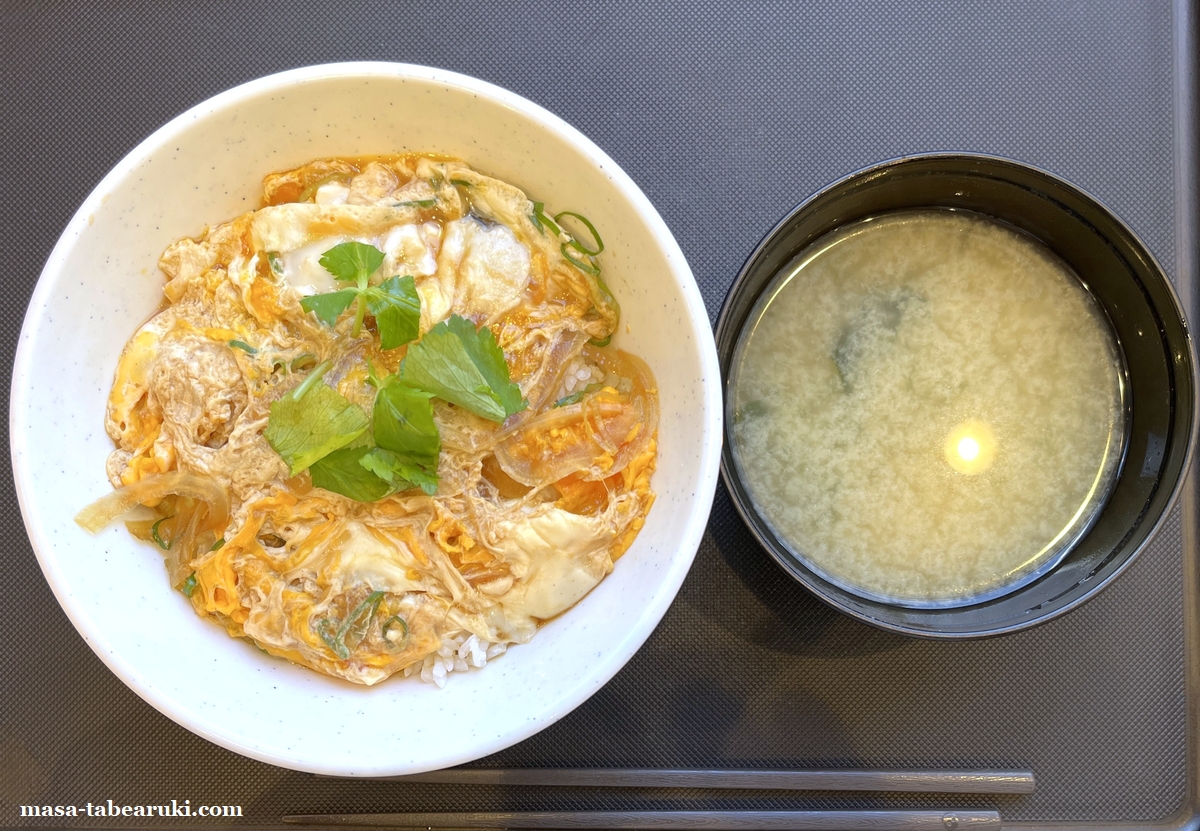 最後に玉子丼を食べたのは1年半ほど前で、その時のライス並の価格は290円(税込)。それからすると40円ほどアップしてしまいましたが、まだ330円で食べられる。味噌汁も付属しており、渡されるときに店員さんに言われましたが、丼でも味噌汁のおかわりは可能なんですね。松のやの定食はご飯と味噌汁がおかわり出来るのは知ってましたが。