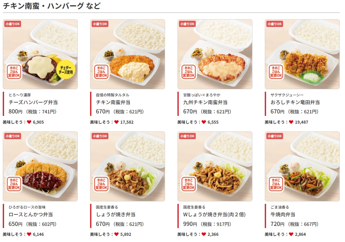 ほっともっとの公式HPにあるメニューを見ると、やよい軒と同じ”美味しそう”の数が記載されています。まあ、ほっともっと、やよい軒は同じプレナス株式会社のブランドなので当然と言えば当然でしょうね。