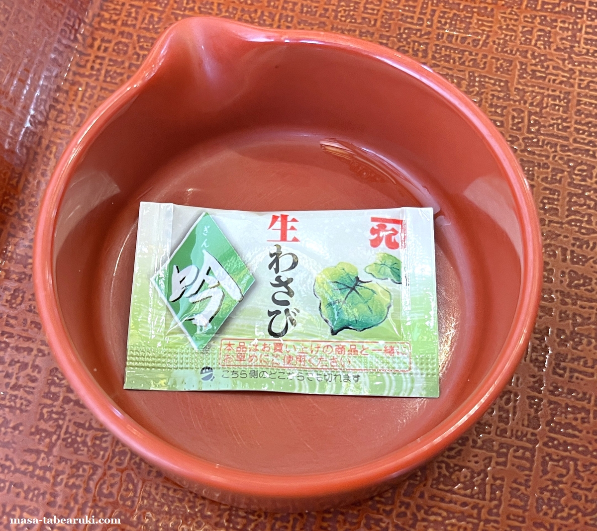 山葵は小袋で付属しており、醤油を入れて溶かすための容器も二つ付いていますが、個人的に山葵はまぐろに直接載せるほうが好きなんで使用しませんでした。