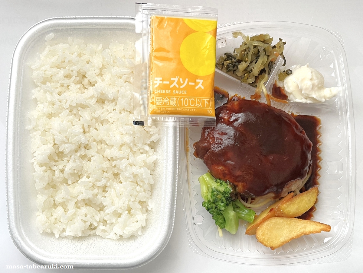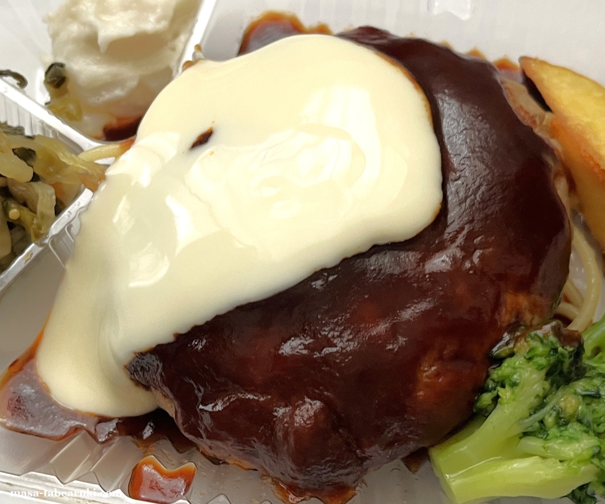 今回はほっともっとにて「チーズハンバーグ弁当」を食べてみました。あとがけのチーズの風味も非常に良く、何よりもハンバーグが想像していたよりも柔らかくて食感も良く好印象の弁当かと。