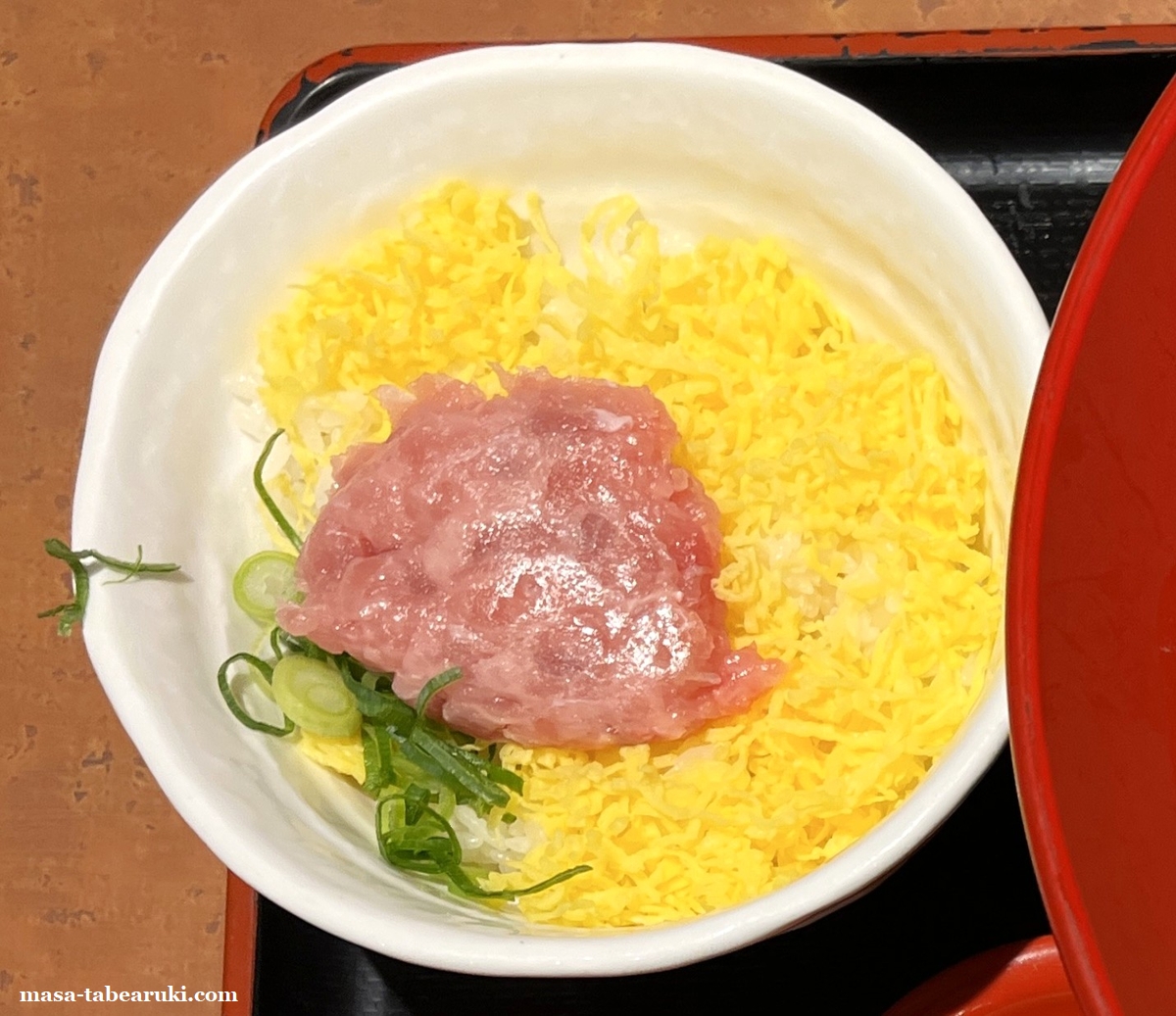 いつものミニ丼のネギトロ丼です。先日、セルフコーナーに山葵も置かれているのを知ったので、それとネギも取ってきました。やっぱり山葵を入れて食べる方が断然旨いですね。