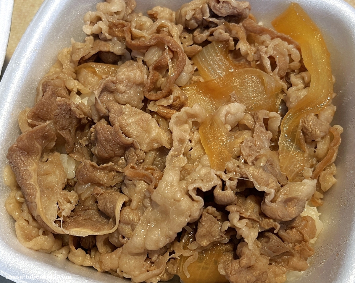 以前はどっちの方が高かったのかは覚えていませんが、現在の価格を確認すると牛丼特盛(テイクアウト税込価格921円)で、並盛2個(テイクアウト税込価格978円)と並盛2個の方が57円高い。しかしこのキャンペーンを適用すると並盛2個の方が特盛よりも安くなるのが魅力。