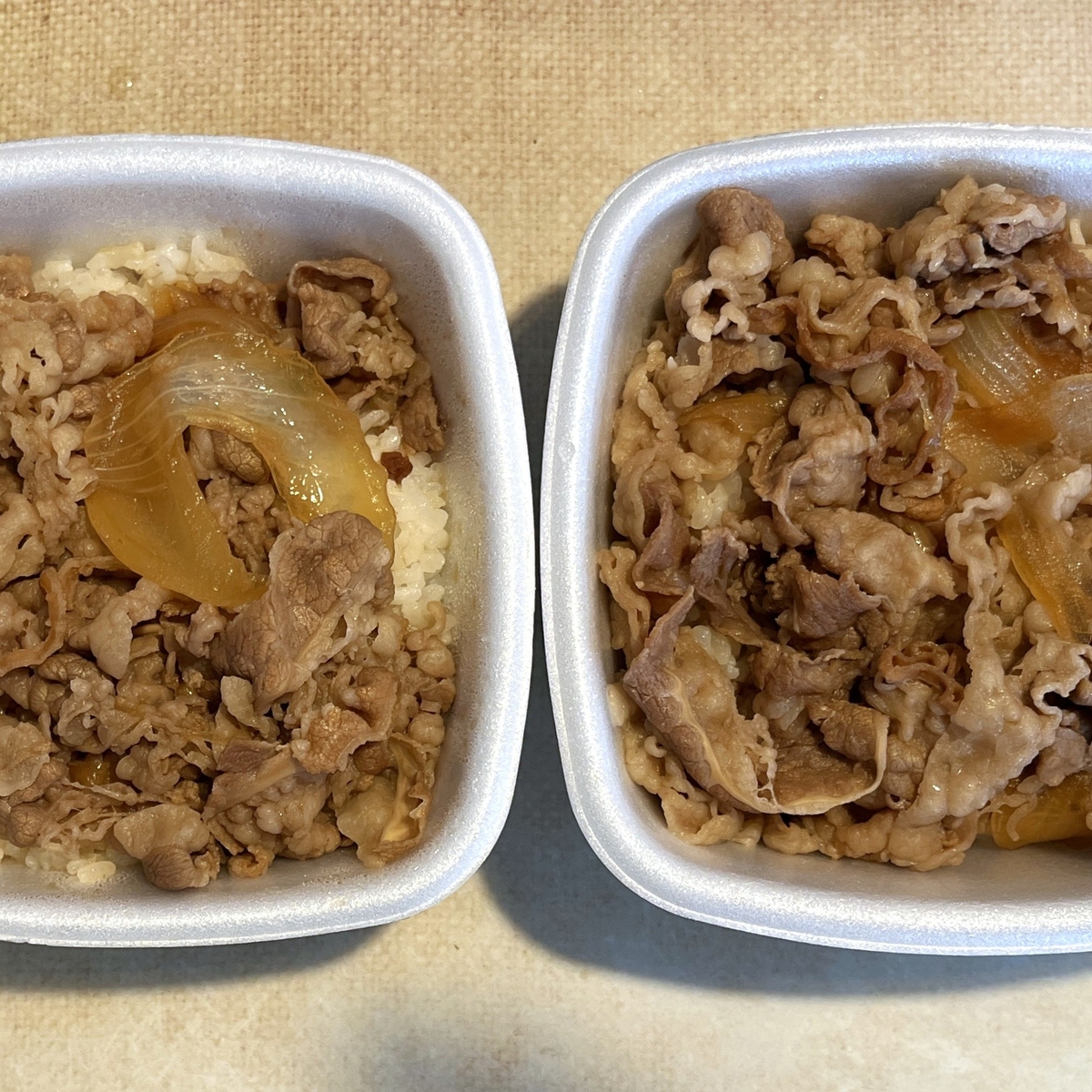 また吉野家でこのサービスやってる。牛丼特盛をテイクアウトするなら並盛2杯が良い?