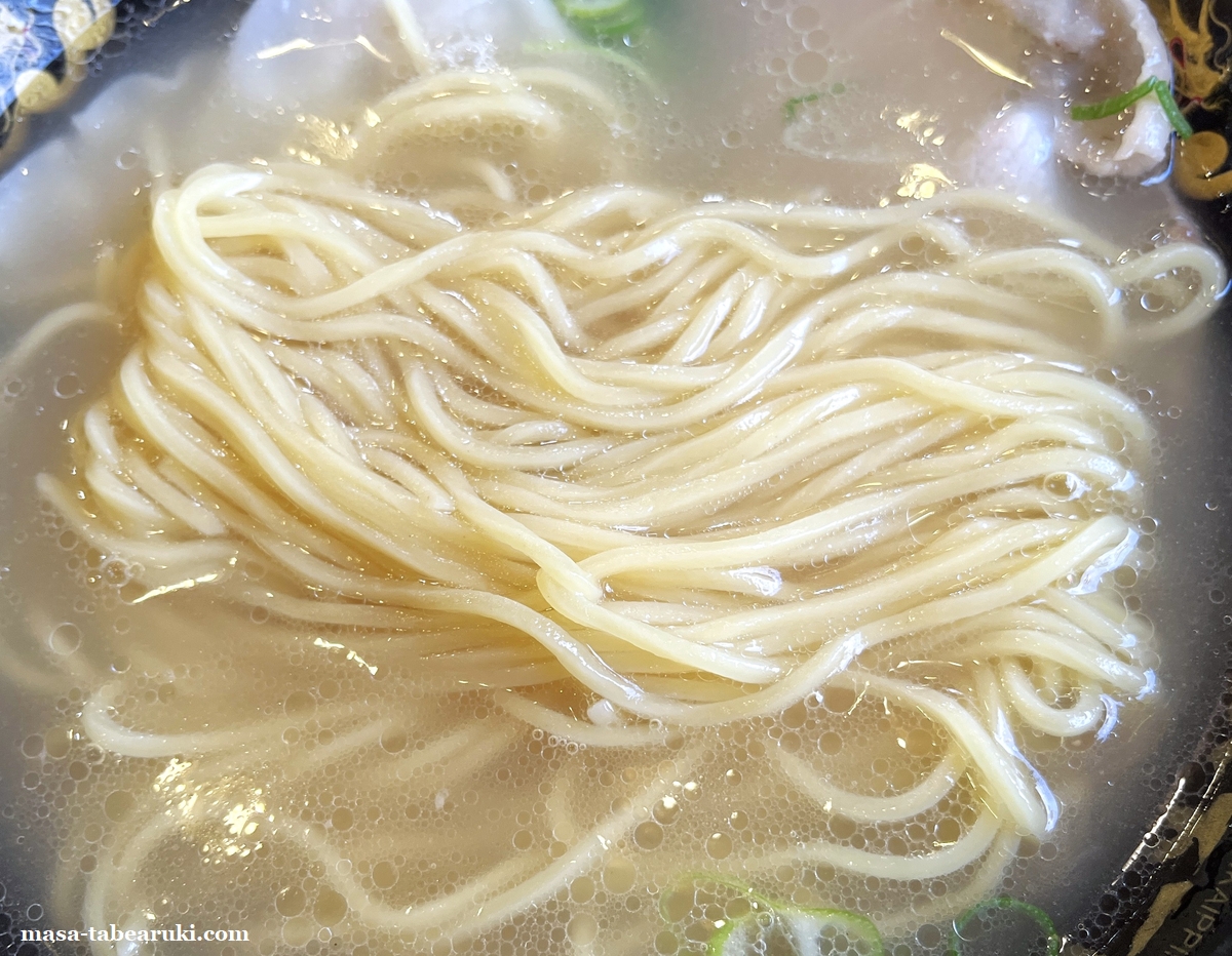 麺は細めで塩ラーメン用に開発されたものとのこと。モチっとした食感でコシも感じられ、さすがに塩用に開発されただけあり、スープとも馴染んでいるように思えます。