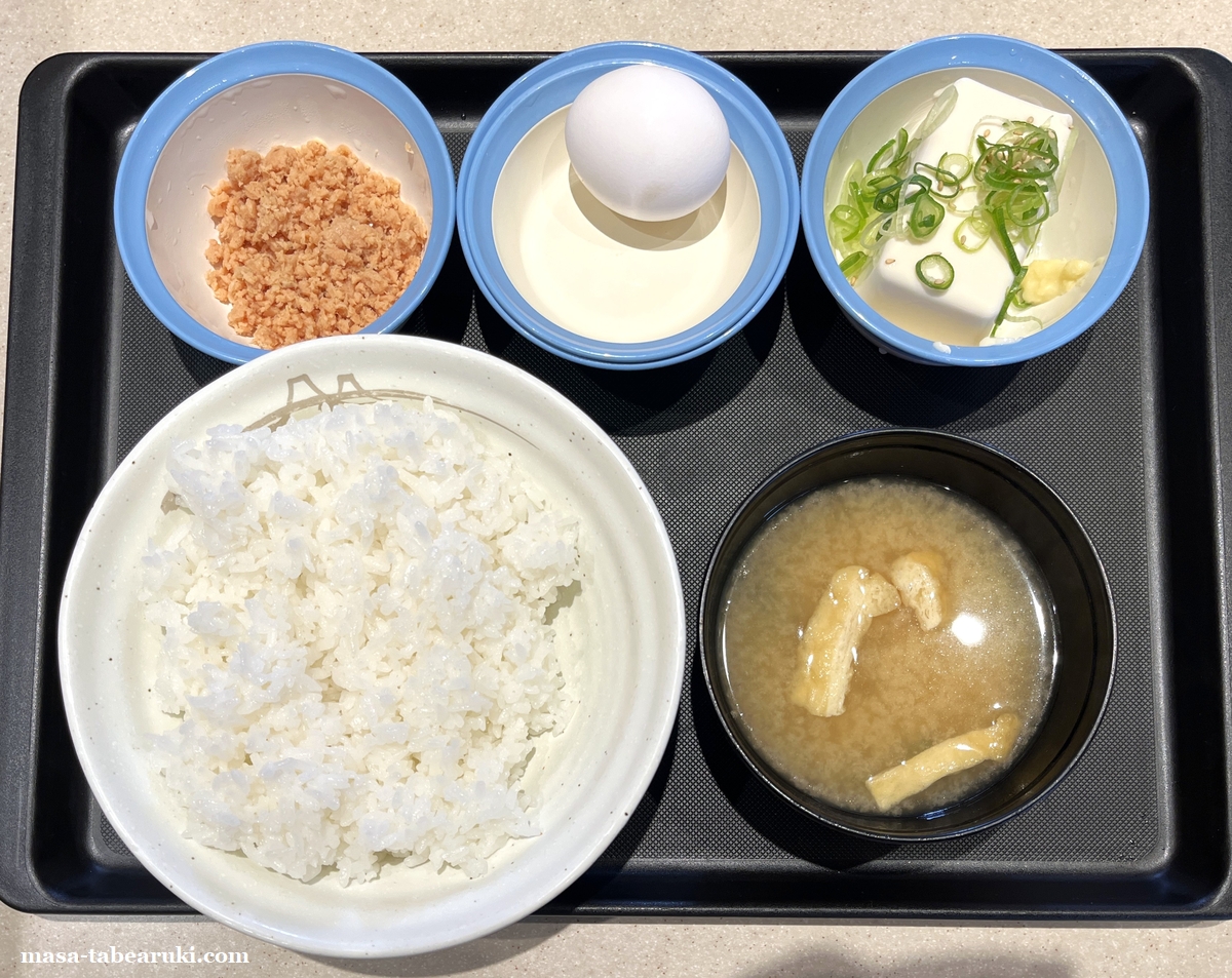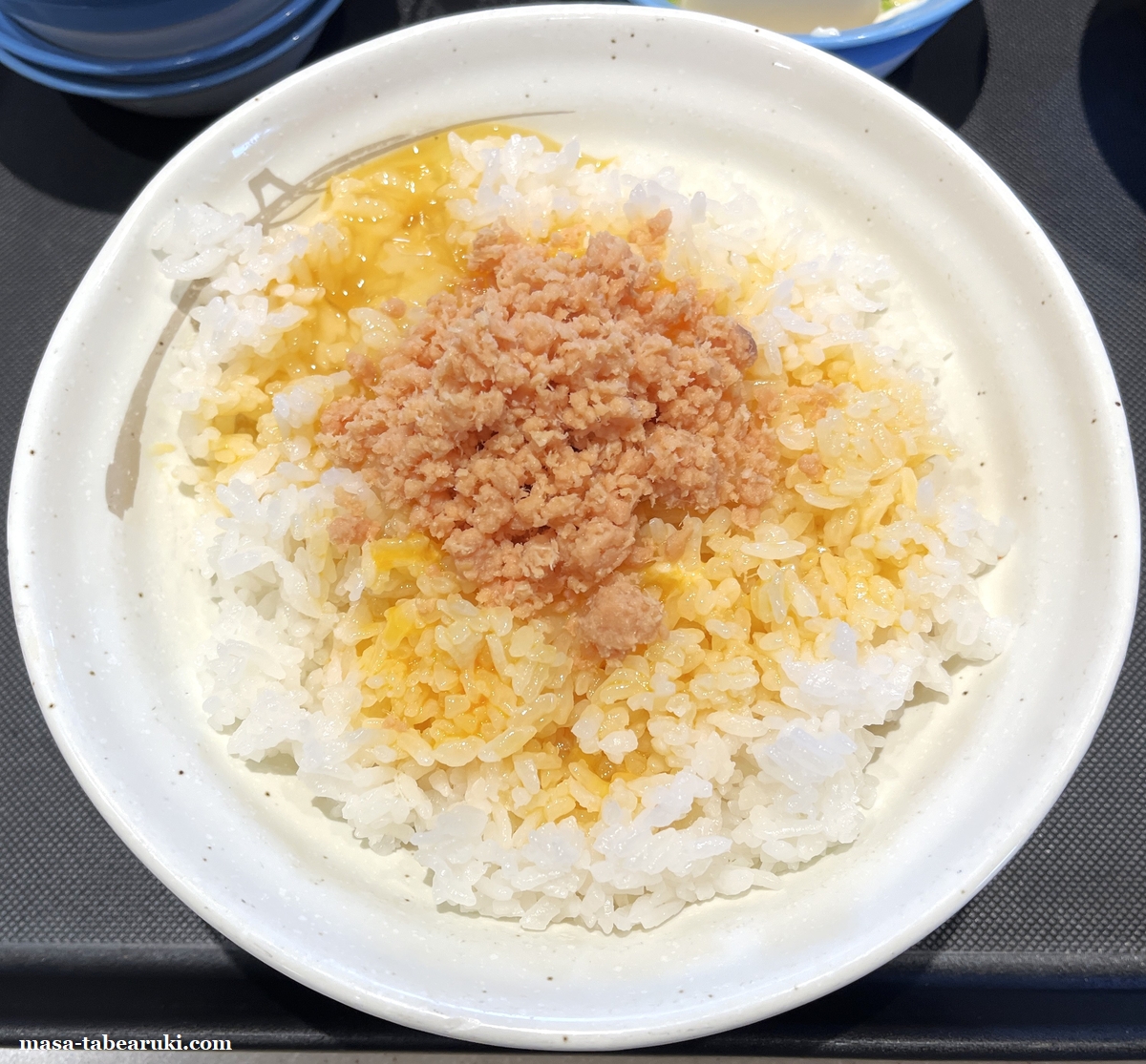 今回は2026年1月14日より朝食メニューに追加となった「北海道産鮭の粗ほぐし玉子かけごはん」を食べてみました。個人的には玉子かけご飯だけでも朝食としては問題ないものの、鮭がプラスされることでちょっとリッチな玉子かけご飯になるように思えました。